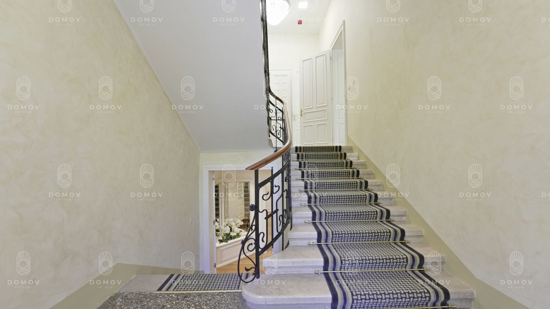 ✅ centrálny vstup vedúci k honosnému kamennému schodisku