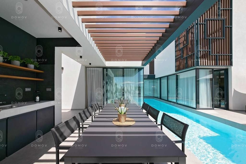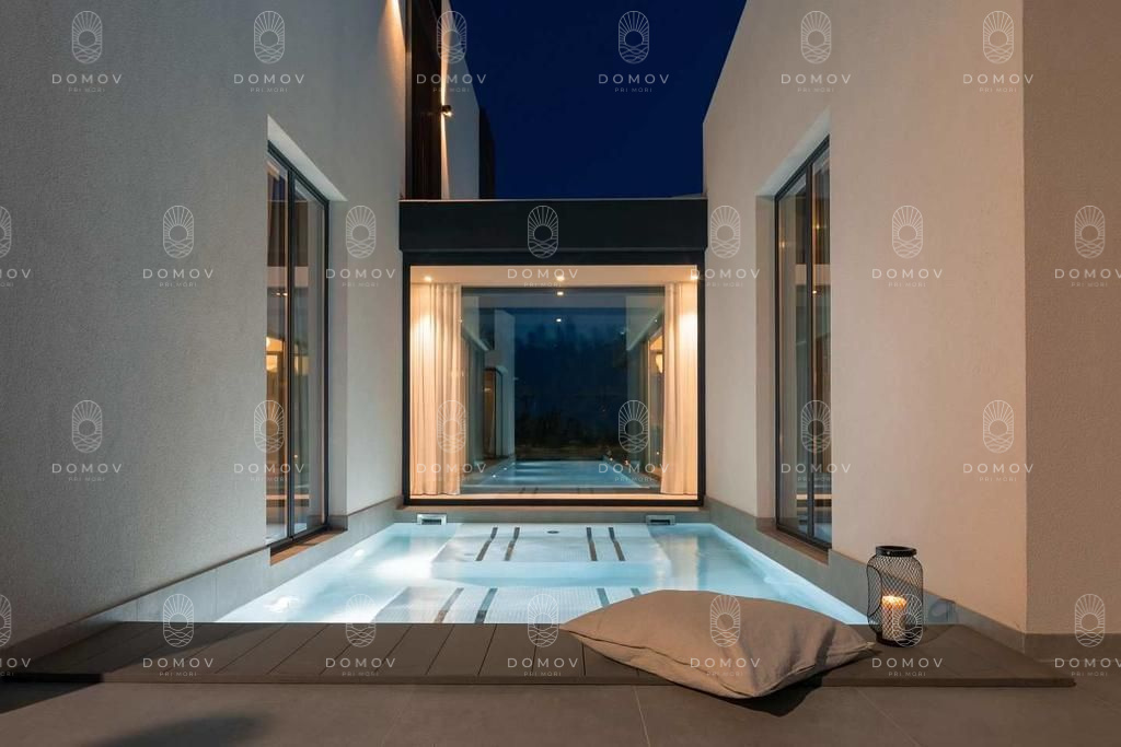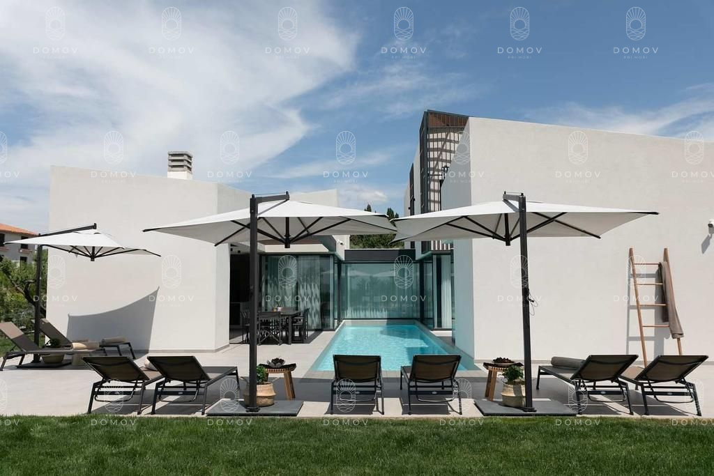Ponúkame na predaj jednu z najexkluzívnejších moderných víl na Istrii, situovanú v pokojnej lokalite Kaštelir, len 10 km od centra mesta Poreč. Táto dizajnová vila okamžite zaujme svojou jedinečnou architektúrou a konceptom pozostávajúcim z piatich samostatných jednotiek, prepojených elegantnými chodbami, s centrálnym vonkajším bazénom, ktorý na zadnej strane prechádza do jakuzzi.